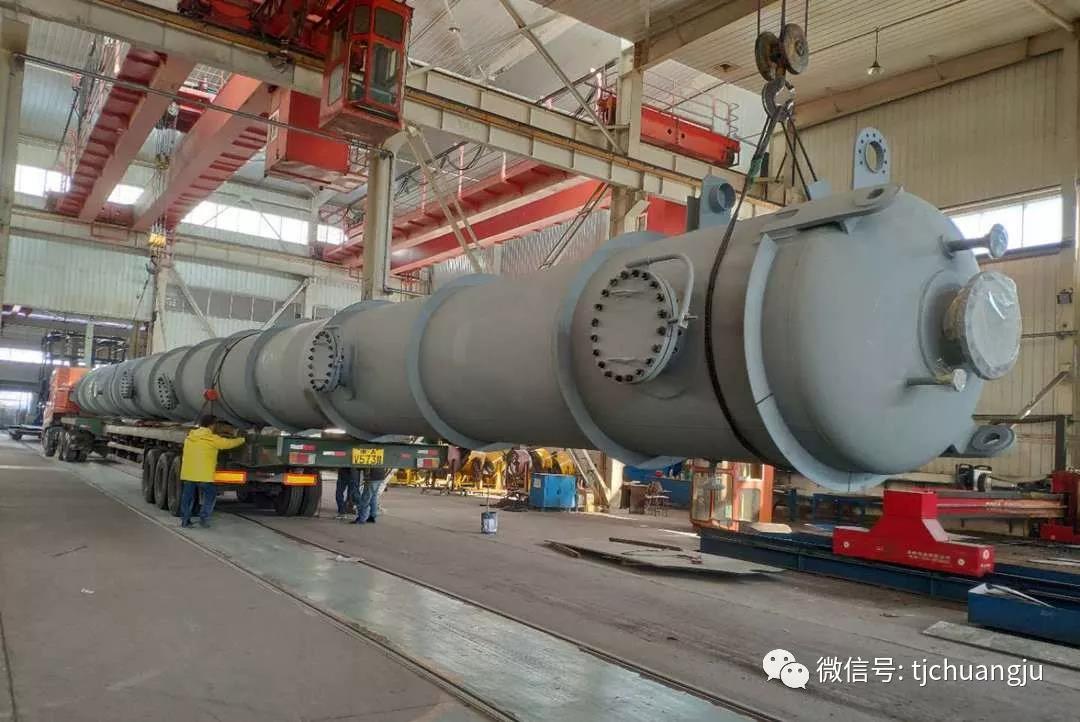 上圖為回收塔C-202,規(guī)格為DN1668/DN1600, 長(zhǎng)達(dá)34.767米,重21噸。