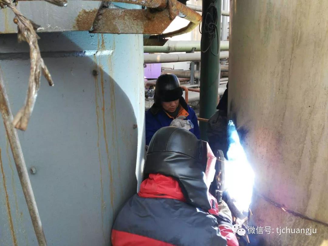 下圖為承德某公司蒸氨內(nèi)件改造工程現(xiàn)場,工程從2018年12月28日開始,直至2019年1月10日結(jié)束。寒風中行人匆匆,露天工作的工程部同事們的辛苦可想而知。