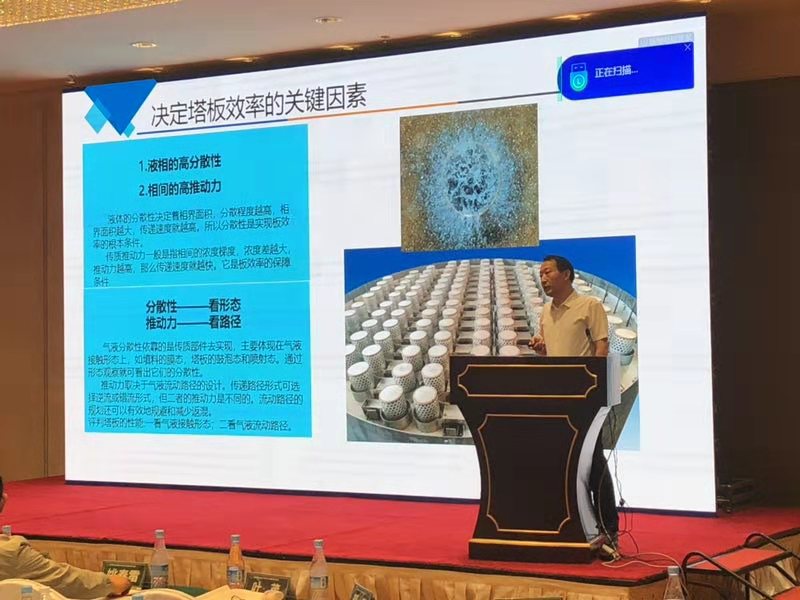 會(huì)議期間創(chuàng)舉公司董事長(zhǎng)王柱祥先生以“新一代逆流無(wú)返混噴射態(tài)塔板技術(shù)”為題展開(kāi)技術(shù)宣講。會(huì)上詳細(xì)講解創(chuàng)舉新型CJ系列噴射態(tài)塔板的技術(shù)原理及特點(diǎn),以及該技術(shù)在烯烴提濃、酸性水汽提等領(lǐng)域的典型應(yīng)用。