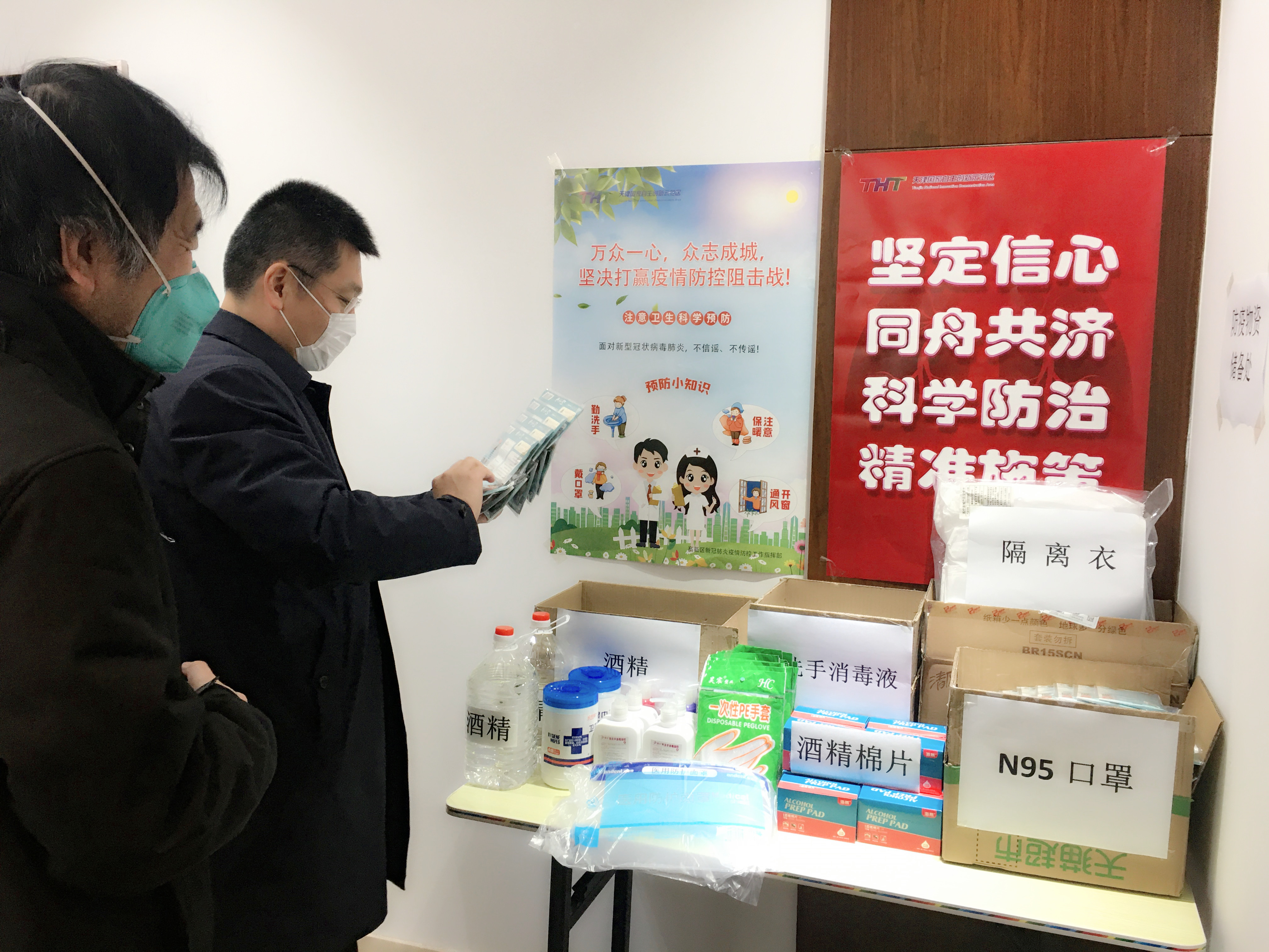 單書(shū)記到訪后首先檢查公司防疫落實(shí)情況,并對(duì)登記記錄表、防疫物資、隔離室,復(fù)工就餐安排等逐一核查和詢問(wèn)。