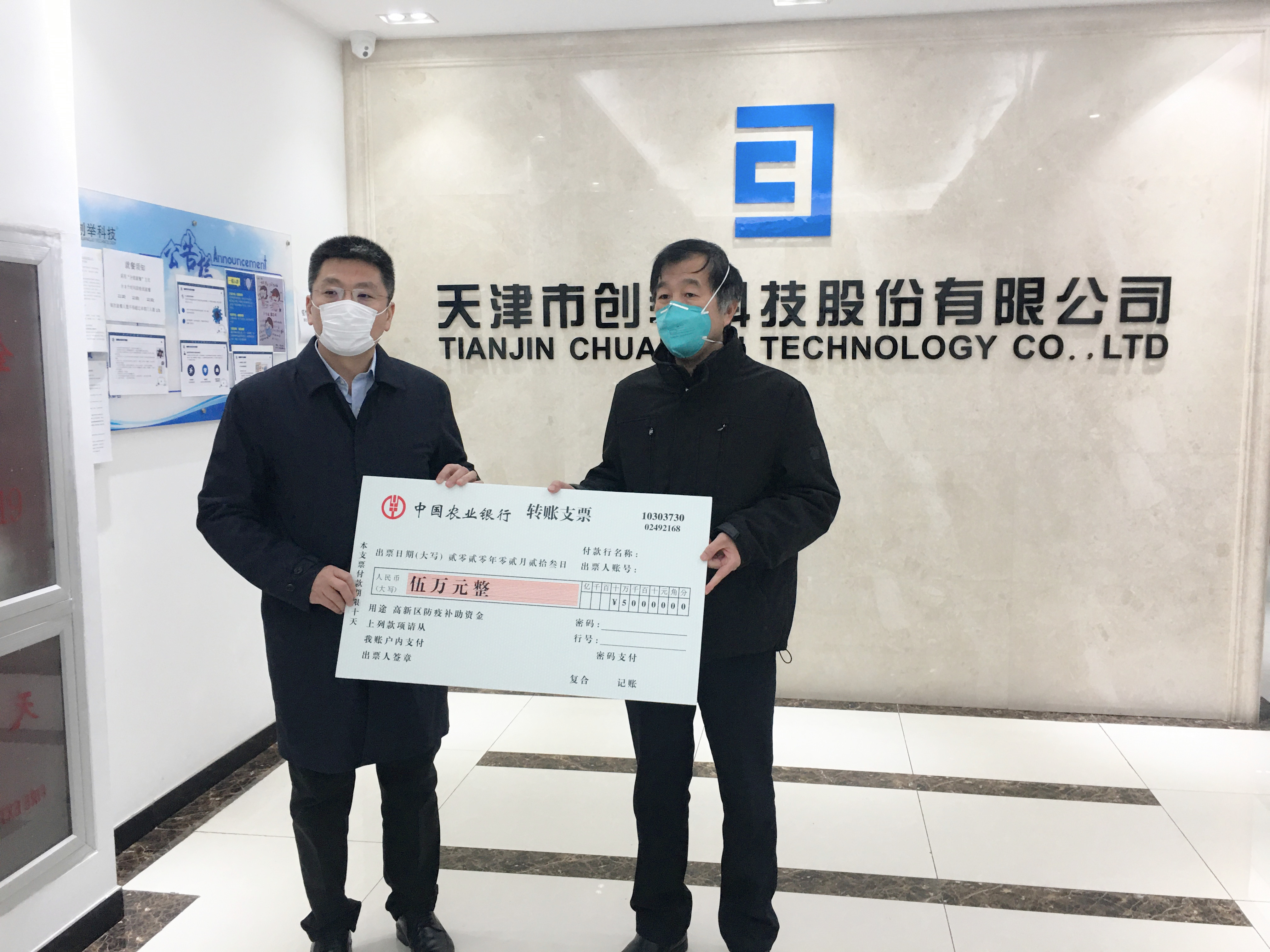 2020年2月25日,天津?yàn)I海高新區(qū)黨委書(shū)記、管委會(huì)主任單澤峰同志帶隊(duì)到天津市創(chuàng)舉科技股份有限公司(以下簡(jiǎn)稱“創(chuàng)舉公司”)視察疫情防控工作情況,并為企業(yè)送來(lái)防疫補(bǔ)助專項(xiàng)資金。創(chuàng)舉公司副總宋洪濤,董事會(huì)秘書(shū)譚紹瑩陪同調(diào)研,并詳細(xì)介紹企業(yè)疫情防控工作開(kāi)展情況。