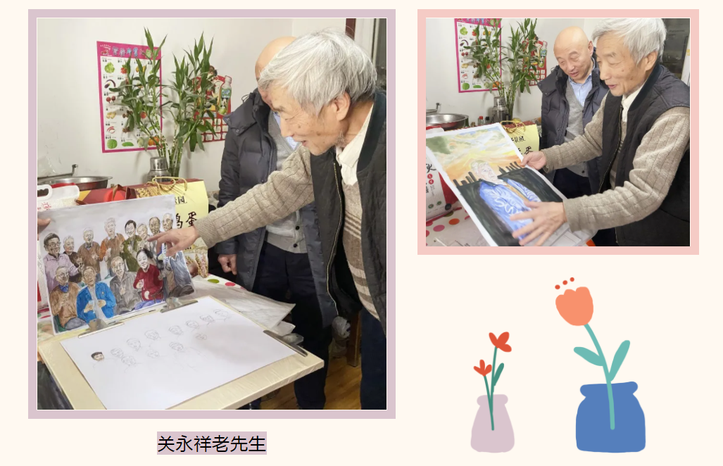 關(guān)永祥老先生大老遠(yuǎn)就在門口迎接,像是等待許久未見的親人一樣。老人興致勃勃地講述起自己的晚年生活,退休以后,除了積極鍛煉保證身體健康之外,他還堅(jiān)持個(gè)人書畫創(chuàng)作,說到這里,老人還挑選了幾幅得意之作給我們講解創(chuàng)作心得。