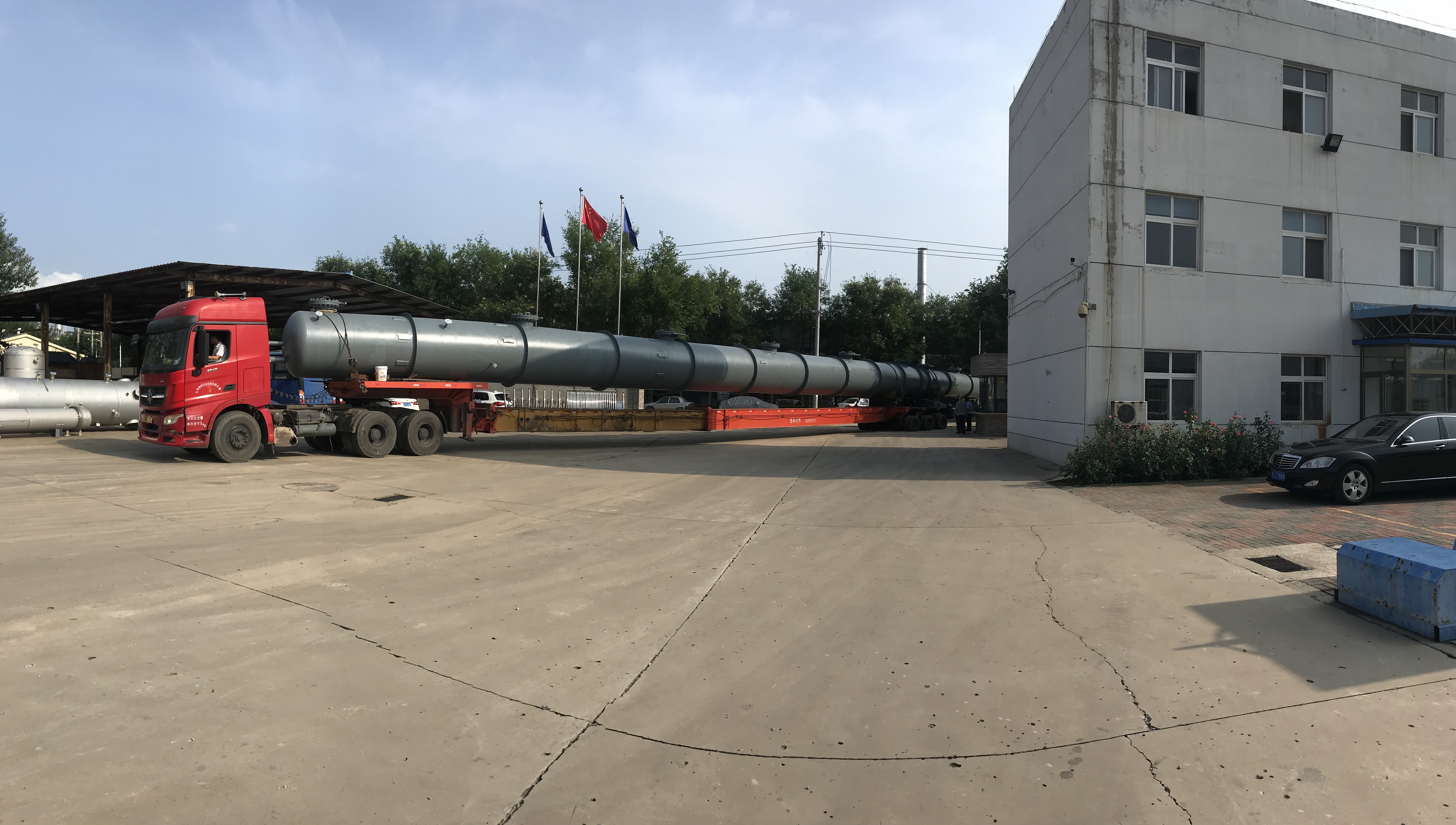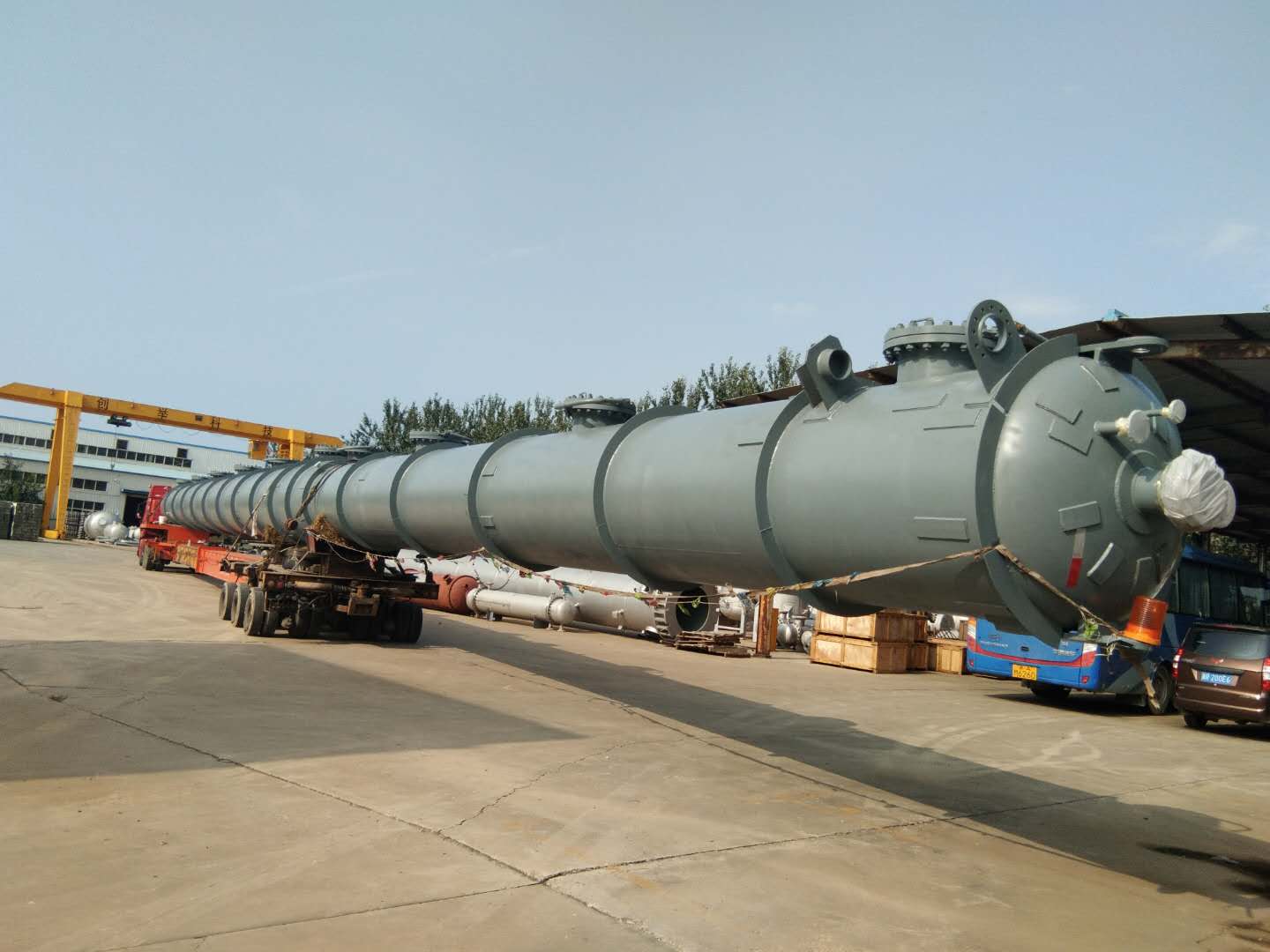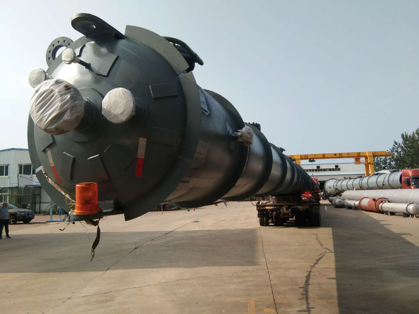 近日發(fā)貨的為脫C6塔,該塔除去裙座長度為45.4米,是我司迄今為止發(fā)貨的最長設(shè)備,該批設(shè)備的成功制作完成發(fā)貨標(biāo)志著創(chuàng)舉公司在超大超長型塔設(shè)備設(shè)計(jì)制作方面又邁上了一個(gè)新的臺(tái)階。