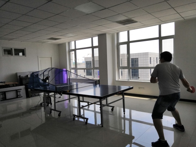 你看,乒乓球臺(tái)前,新手正對(duì)著發(fā)球機(jī)練習(xí)標(biāo)準(zhǔn)動(dòng)作,期待他能早日步入高手行列。